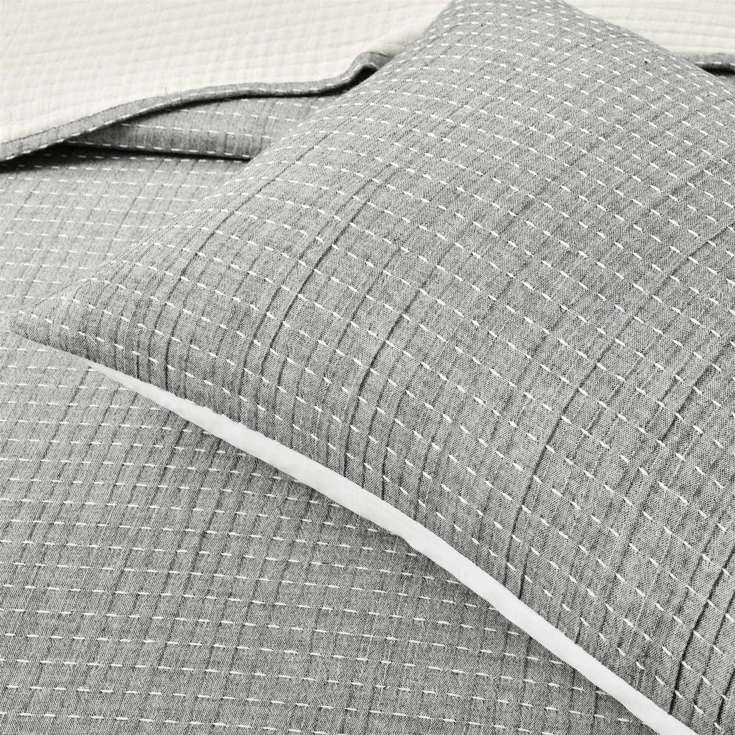 Give your bedroom a stylish upgrade with this Full/Queen Size 3-Piece Cotton Yarn Woven Quilt Coverlet Set in Grey/Cream. This high quality affordable set is yarn dyed and woven with pick stitch detail for a textured solid color look. Use it as stand-alone bedding or a layering piece. This Full/Queen Size 3-Piece Cotton Yarn Woven Quilt Coverlet Set in Grey/Cream is STANDARD 100 by OEKO-TEX certified. The fabric, dyes, and all components have been tested in an independent laboratory and certified against a list of more than 350 harmful substances. 3-Piece Set Includes: One Quilt/Coverlet and Two Pillow Shams.